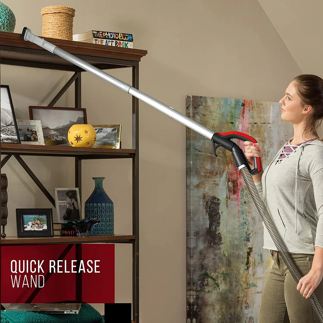 QUICK & EASY REACH: Clean higher surfaces with the flexability and ease of the quick release, on-board extension wand for 10 feet of total reach. Plus, 20 feet of cord length to clean from room to room without having to unplug.