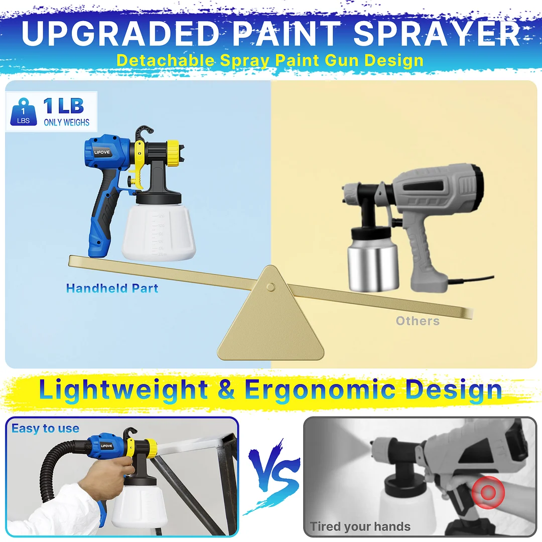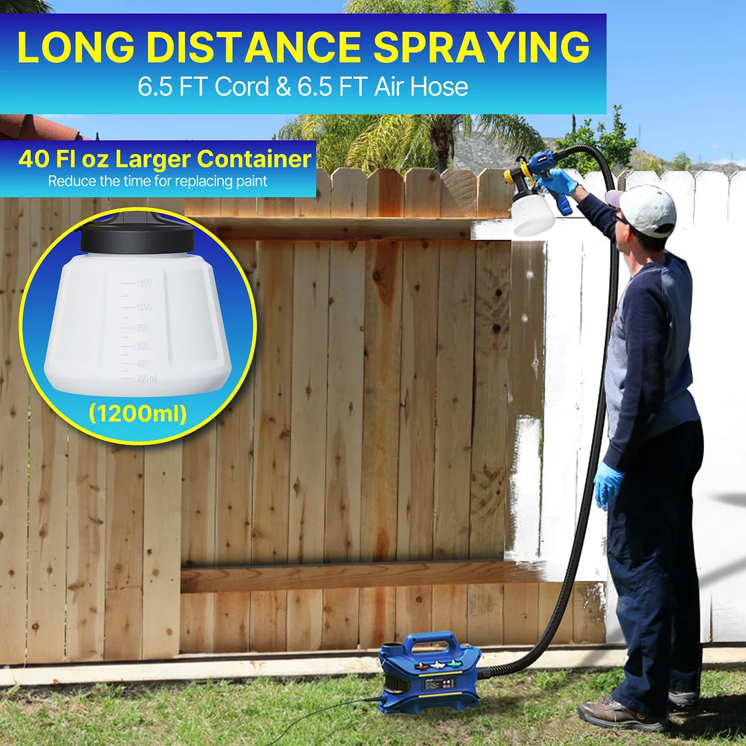Upgraded Split Design - LIFOVE spray paint gun adopts the separate design of motor and spray gun, which is designed to make your painting more labor-saving and easier. The motor part is equipped with a shoulder strap, which can be placed or carried. The detachable handheld spray gun part only weighs 1 lb, which greatly reduces the fatigue burden on your arms compared to other products on the market. 6.5FT flexible air hose gives you the mobility to easily reach your painting projects.
