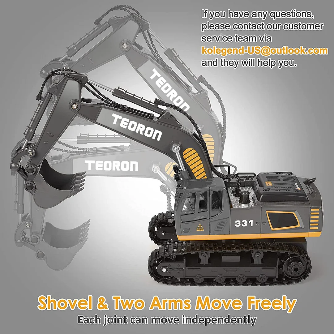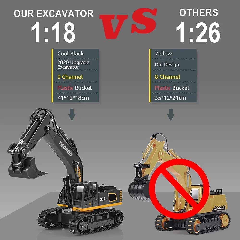 【2021 Upgraded Version】Compared with the traditional yellow excavator, we have upgraded the color, which is different from others, our black rc excavator looks more cool and realistic. The size is more portable and perfect for kids to operate and play. Enjoy the fun!