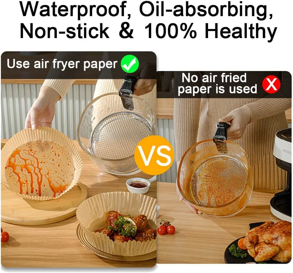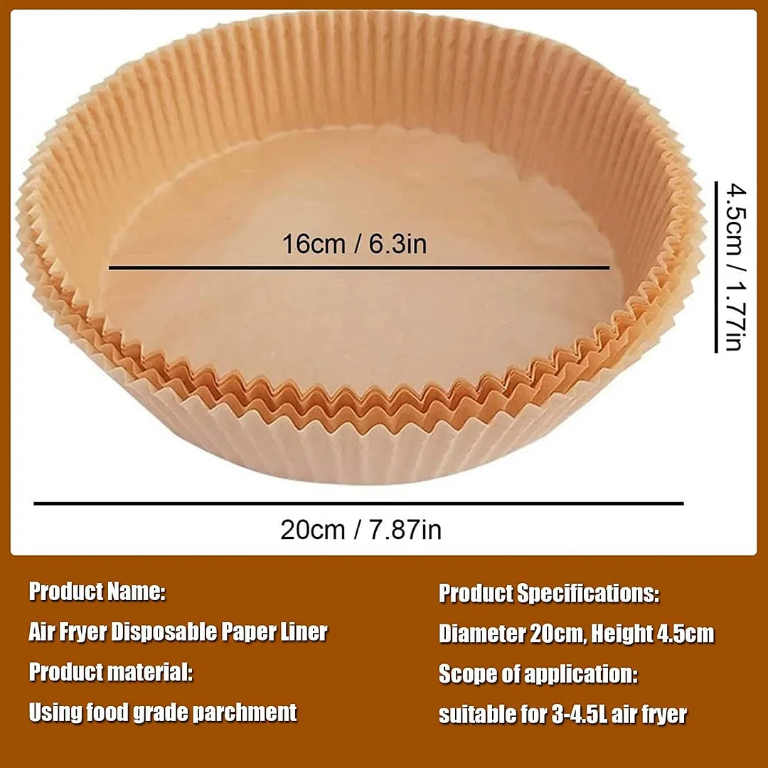 Keep Your Air Fryer Clean: The round disposable paper liner can effectively keeps your air fryer away from food residues, makes clean up a breeze and your air fryer will as clean as unused. Greaseproof paper liners heightened edge 4.5cm, which can protect the side of fryers and prevent food from sticking to them.