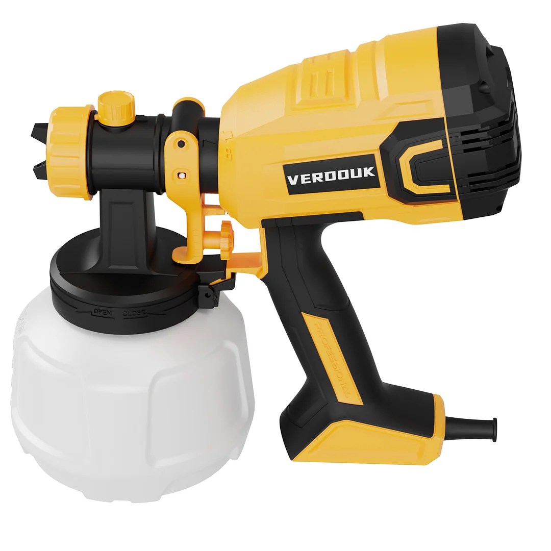 POWERFUL and VERSATILE: VERDOUK professional electric HVLP paint sprayer is the best for any painting job. With a potent 700W motor, the paint sprayer delivers a powerful and consistent performance. The maximum viscosity is as high as 120 Din-s. The spraying atomization is fine, the spraying surface is concentrated, smooth, and uniform, and the adhesion effect is good.