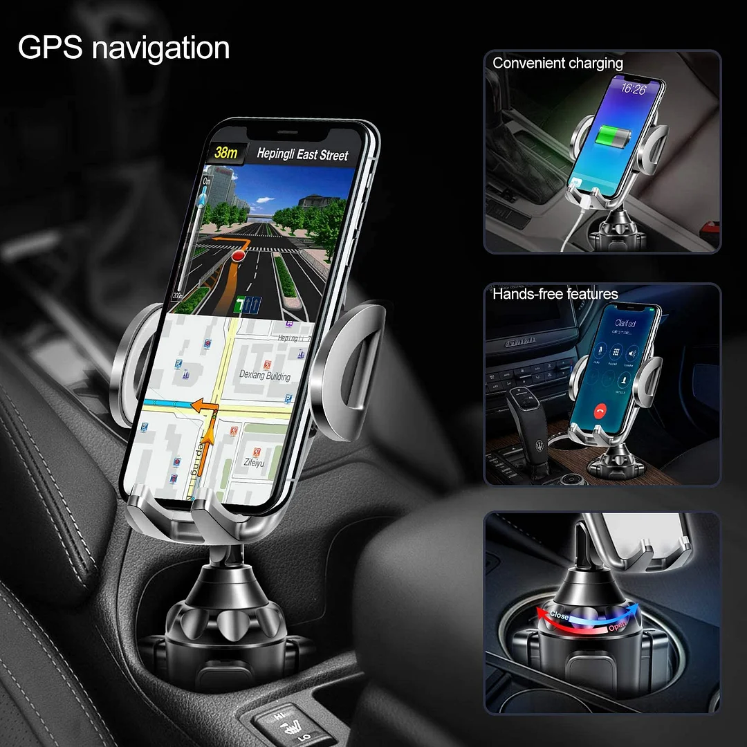 ⭐[Flexible Adjustable & Safe]: Enjoy a safe and the best viewing angle without obstructing your view, 360° rotatable for desired position vertical or horizontal mode on our cup holder cell phone holder. It can ensure safe driving whether you are talking, navigating, listening to music or charging.