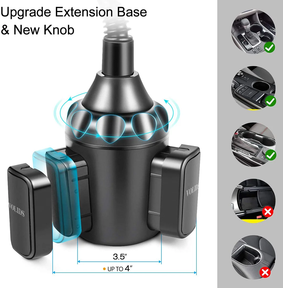 ⭐[Easy & Quick Installation]: New Cup holder phone mount is Adjustable and fits firmly and perfectly,securely in the cup holder for car, truck, pickup, SUV, golf cart, sofa, treadmill or stroller, fitting to varying size cup holders in your vehicle. Featuring one-button release side arms and convenient holder legs. For those who have a car, this is worth having. It is the most reassuring choice to give this as a holiday christmas gift to someone you care about.